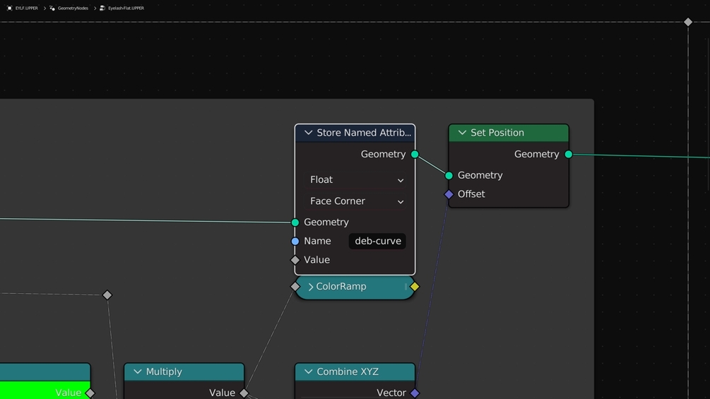 A Blender file (.blend) containing the flat eyelashes generated using Geometry Nodes